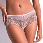 De Hypnolove hipster van Aubade is uitgevoerd in de kleur Gold Feather. Deze sensuele hipster is gemaakt van stevige tule, versierd met wit gouden bladbroderie. De hipster is lichtdoorschijnen en aan de bovenkant afgewerkt met kant en gestippeld tule. Daarnaast ook nog een wit strikje en goud ringetje aan de achterkant. Zoveel bijzondere details, een echte eyecatcher! Combineer met de bijpassende BH en je hebt een geweldige look!-