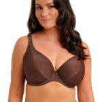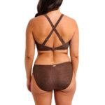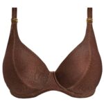 De Fantasie SABANA glitter plunge bikini top in de kleur bruin geeft je een stijlvolle look voor de zomer. Deze bikini met beugel biedt een stevige ondersteuning en creëert een mooi silhouet dankzij het lager uitgesneden plunge model. De stof is voorzien van een subtiele structuur en valt op door de verfijnde badmode met glitter afwerking die mooi oplicht in de zon. Aan de aanzet van de schouderbandjes bevinden zich goudkleurige details die het geheel afmaken. Je ervaart met Fantasie direct de combinatie van kwaliteit en een comfortabele pasvorm.