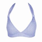 De MarieJo Swim Tinjis triangel bikini top in de kleur paars combineert een stijlvolle uitstraling met een aangenaam draagcomfort. Deze bikini top kenmerkt zich door een stof met een fijne ribstructuur en is verwerkt met glittergaren voor een subtiel glanzend effect. Het model heeft een brede band onder de borst die zorgt voor stevigheid zonder beugel. De bandjes zijn voorzien van decoratieve knoopdetails en worden als halter in de nek gestrikt. Met deze badmode met glitter van MarieJo Swim kies je voor een vrouwelijke en verzorgde look aan het water.