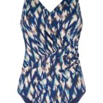 Met het TenCateSwim soft cup V-hals ikat print badpak functioneel kies je voor een combinatie van comfort en stijl. Dit model is uitgevoerd in de kleur blauw en kenmerkt zich door een grafisch ikat dessin. De V-hals loopt over in een overslag met plooien aan de zijkant, wat zorgt voor een rustig beeld op de buik. Zonder beugel biedt dit badpak functioneel ondersteuning door de vaste soft cups en de brede schouderbanden die prettig op de schouders rusten.