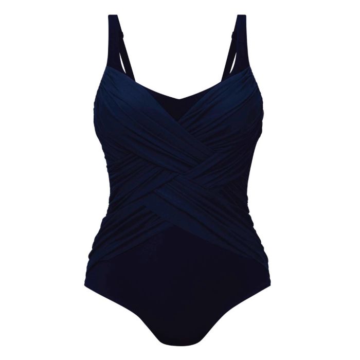 Details: Dit Aileen badpak van Anita is donkerblauw. Stijlvol en tijdloos tegelijk. Het niet voor gevormde badpak heeft iets hoger sluitende cups met beugel voor een optimale ondersteuning. De cross-over plooien aan de voorkant zorgen voor een prachtige pasvorm, waardoor je taille smaller lijkt. Het badpak is voorzien van een comfortabele voering voor extra ondersteuning en geeft een afslankend effect, maar zit nog steeds heel comfortabel door de ademende structuur van het tule materiaal. Dit stevige badpak is volledig gevoerd. Ook in hot pink verkrijgbaar. Valt niet groot, dus bij twijfel over de maat eerder een maat groter bestellen.