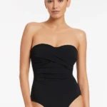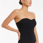 Details: Het Jets TWIST front strapless badpak is uitgevoerd in het zwart. Vrouwelijk, tijdloos, en stijlvol. Door de plooien aan de voorzijde van het badpak wordt een prachtig silouet gecreëerd. Daarnaast is badpak voorzien van een ingebouwde beugel die zorgt voor optimaal comfort en een mooie vorming van de borsten. Perfect model voor de grotere cup maten ook door de fijne stretch die in de cups verwerkt is. Valt mooi om de billen. Kan ook met smalle bijgeleverde bandjes gedragen worden.