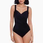 Details: Dit Sanibel Miracalesuit badpak is in het stijlvol zwart. Het niet voor gevormde badpak heeft hoger sluitende cups met beugel voor een optimale ondersteuning. De cross-over plooien aan de voorkant zorgen voor een prachtige pasvorm waardoor je taille smaller lijkt. Door de bredere verstelbare schouderbanden blijft alles perfect zitten. Het MIRACLESUIT badpak met shape effect is voorzien van een comfortabele, stevige voering voor extra ondersteuning. Miraclesuit badpakken hebben allemaal een perfecte pasvorm door de stevige Miratex stof. Miratex heeft driemaal meer spandex/lycra dan de doorsnee badmodestoffen, waardoor het driemaal steviger is dan een gewoon badpak. Hierdoor vormt de stof ook naar het lichaam en blijft op z’n plaats tijdens het bewegen. Een goede duurzame investering, waar je meerdere seizoenen plezier van hebt!! Daarnaast ook gemaakt van XTRA LIFE LYCRA wat chloor bestrijd. Let op: de Miraclesuits hebben een sterk corrigerend effect, zitten wel erg comfortabel, maar adviseren wij wel één maat groter.