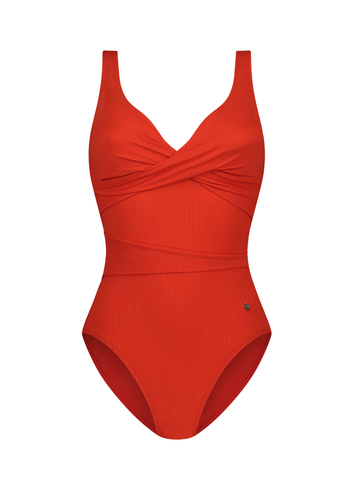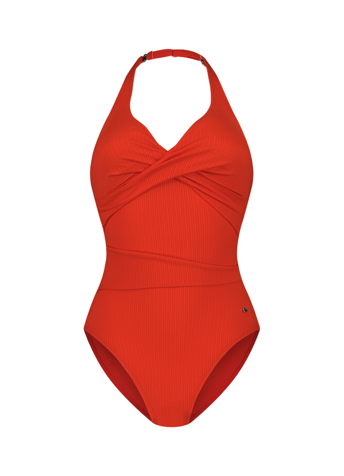 Details: Dit Fiery Red badpak van Beachlife is in de prachtige kleur rood. Dit mooie badpak heeft lichte padding in de cups, waardoor de borsten een mooie ronde vorm krijgen. Daarnaast heeft het badpak nog extra versteviging door de meshvoering. De pads zijn uitneembaar. De schouderbandjes zijn recht of als halter te dragen. De overslag aan de voorkant zorgt voor een mooi decolleté en door de corrigerende stof wordt er een slanke taille gecreëerd. Extra detail is de leuke overslagbelijning in de taille.