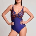 Het Davidbeach IRMA blue/orange badpak voorgevormd is uitgevoerd in de kleur Marine met een grafisch oranje dessin op de cups. Dit badpak voorgevormd heeft stevige cups en een elegant gedraaid detail tussen de borsten voor een mooie vorm. De verstelbare schouderbandjes zorgen ervoor dat jij de pasvorm eenvoudig naar wens aanpast. De achterzijde is effen blauw en heeft een diepe ronde uitsnede. Met dit item van Davidbeach kies je voor een stijlvolle en verzorgde look.