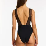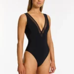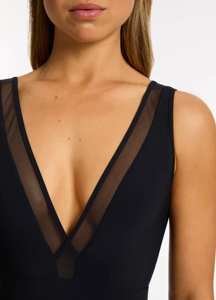 Details: Het Jets LURE Plunge badpak is uitgevoerd in het zwart. Vrouwelijk, fashionable, tijdloos, en super stijlvol. Dat is deze echt eyecatcher! Door de lage v-hals en de verfijnde tule langs de cups, wordt een prachtig silhouet gecreëerd. De mooie brede tule schouderbanden lopen door naar de rug. Dit zorgt voor een sexy en sporty uitstraling. Valt mooi op de billen, model is zowel voor als achter iets hoger opgesneden. Combineer met één van de bijzondere beach accessoires van Jets en je hebt een geweldige tijdloze set die je seizoen na seizoen weer pakt!