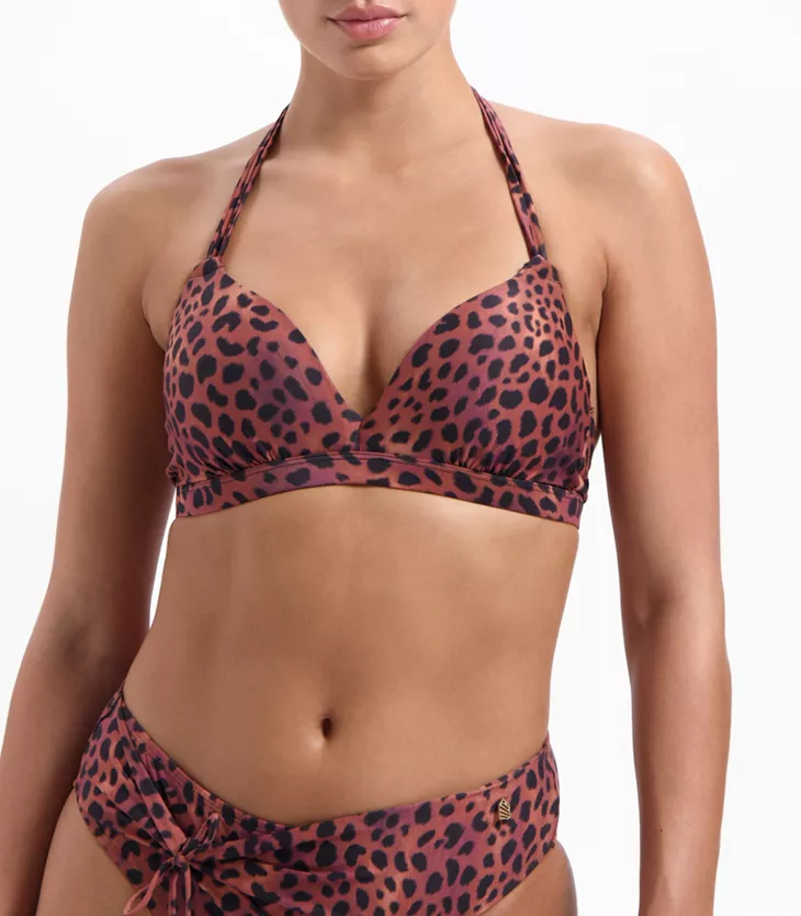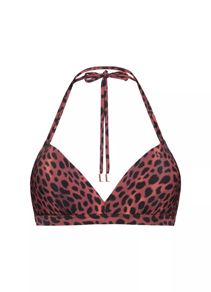 Details: Deze bikinitop uit de Leopard Lover collectie van Beachlife is uitgevoerd in een mooie panterprint in de kleurencombinatie zwart met bruin. De voorgevormde cups voelen zacht aan en geven een mooie ronde vorm. Dit is al jarenlang een bestseller bij Beachlife! Vrouwlijk, sexy en ook nog een super leuk het dubbele bandje wat naar je nek loopt. Daarnaast geeft deze top een nog een prachtig decolleté met het subtiele push-up effect. Dit leuke model is ook verkrijgbaar in Fresh green en Lavender glitter.