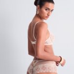 De Aubade ICONIC CALYPSO plunge BH met beugel combineert een verfijnd ontwerp met stevige ondersteuning. Deze BH met beugel in de kleur Huid is vervaardigd uit transparant kant met een gedetailleerd grafisch patroon. Tussen de cups bevindt zich een subtiel goudkleurig detail dat de aandacht trekt. De verstelbare schouderbandjes zijn bevestigd aan decoratieve gouden ringen voor een elegante afwerking. Dit model van Aubade heeft een diepe plunge pasvorm die het decolleté accentueert. Het materiaal sluit aan op de huid en biedt comfort.