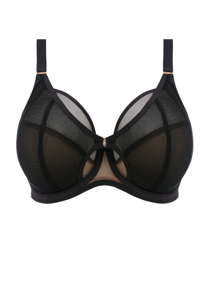 Ontdek de gedurfde twist op de populaire Matilda-beha met de nieuwe Kintai Plunge Bra van Elomi. Deze stijlvolle plunge beha combineert tijdloze elegantie met een modern, speels effect. De zwarte overlay van fijn visnetmesh contrasteert prachtig met de warme Café Au Lait-voering en creëert een subtiel ‘peek-a-boo’ effect dat onzichtbaar blijft onder kleding. De ongevoerde tule bovenkant zorgt voor een lichtere, luchtige uitstraling. De elastische halslijn past zich aan, aan jouw vormen voor de perfecte fit. Zachte afwerking langs armen, rug en onderband – voor ultiem draagcomfort. Luxe roségouden details bij de cupaanzet en het midden voor een elegante touch. Let op: Ben je gewend om Prima Donna te dragen? Elomi valt een stuk kleiner, dus kies dan 2 cupmaten groter!