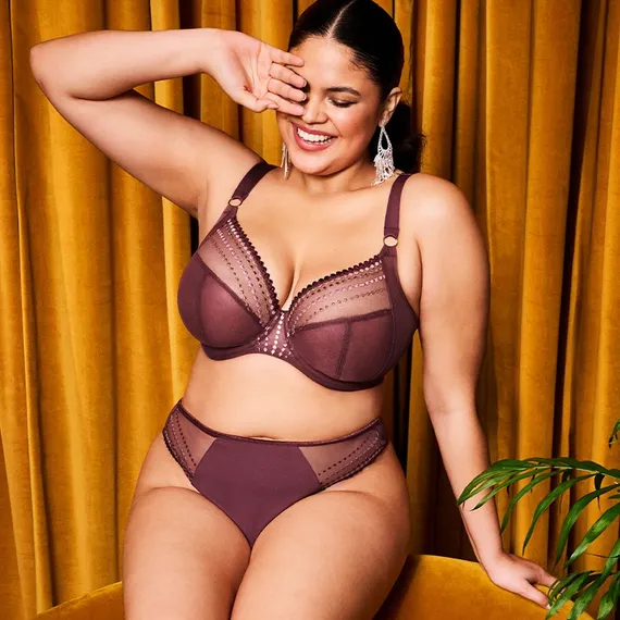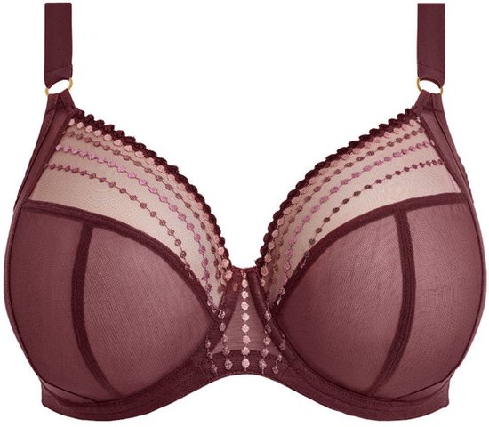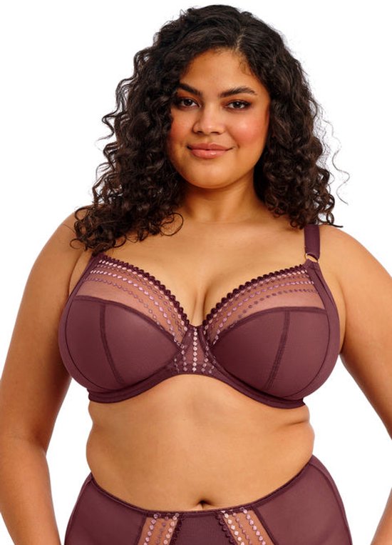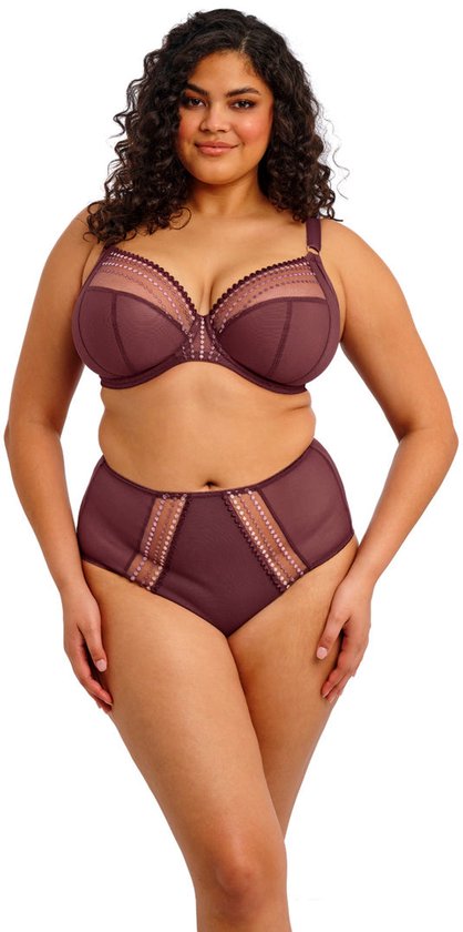 De nieuwe Matilda plunge bh is in de prachtige tint Sugarplum. Deze bestseller van Elomi is niet voor niets geliefd: met haar diepe plunge, iconische kralenborduursel en subtiele glans straalt ze pure luxe uit. Het ombré-effect van metallic garen, van bordeauxrood tot zachtroze geeft een unieke, vrouwelijke touch aan je lingeriecollectie. De driedelige cups met zijsteun zorgen voor een flatterende, voorwaartse vorm, perfecte lift én optimale separatie. Dankzij de elastische neklijn en flexibele pasvorm voelt deze bh net zo comfortabel aan als hij eruitziet. Let op: Ben je gewend om Prima Donna te dragen? Elomi valt een stuk kleiner, dus kies dan 2 cupmaten groter!