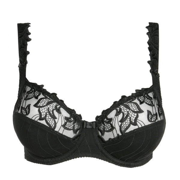 De Prima Donna DEAUVILLE beugel bh is zwart. De boven cups zijn gemaakt van transparant elastische broderie. De bh heeft driedelige soft cups welke dieper zijn dan elke andere Prima Donna-bh. Dé oplossing voor vollere borsten. De stevige cups liften je borsten en dankzij het zijstukje worden de borsten mooi naar voren gecentreerd. De onderkant van de cups hebben een golvend patroon. De achterkant van de bh is van effen materiaal en de bh heeft een haaksluiting op de rug. De bh heeft vaste, verstelbare schouderbandjes. Aan de voorkant van de schouderbandjes zitten strikjes en de bandjes zijn afgewerkt met kant. Tussen de cups is een strikje met een Swarovski diamantje verwerkt. Dit artikel behoort tot onze standaardcollectie. Mocht het artikel niet op voorraad zijn, dan wordt deze nabesteld en binnen 2 tot 3 werkdagen geleverd.Verzenden
