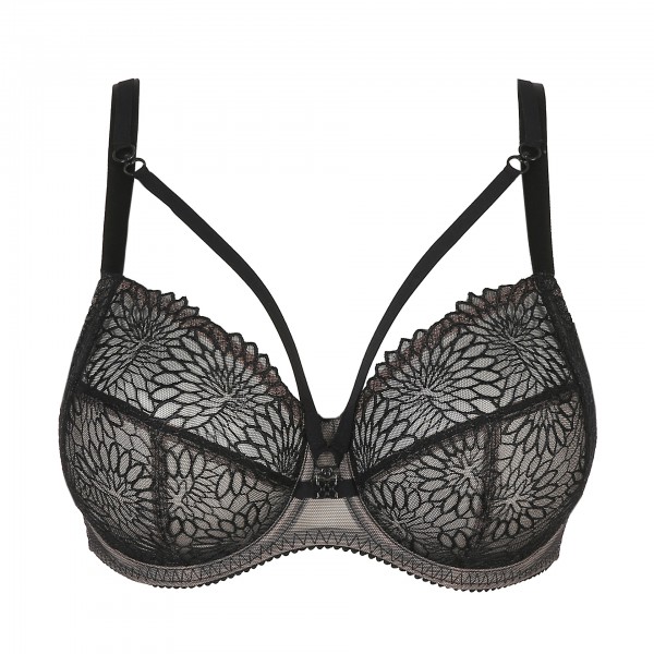 De Prima Donna SOPHORA beugel bh is van huidskleurig tule met zwarte bloemenbroderie. Langs het decolleté loopt een sierlijke schulprandje. De driedelige cups omvatten de borsten volledig. De cups liften en centreren de borsten en geven ze een volmaakt ronde vorm. Door middel van de bijgevoegde afneembare sierbandjes leg je het accent op het decolleté. De bh heeft een haaksluiting op de rug en vaste, verstelbare schouderbandjes. Tussen de cups zit een speels detail. Dit bestseller model is in verschillende kleuren verkrijgbaar. Is je maat niet op voorraad of niet de juiste kleur, vraag gerust naar de mogelijkheden.-