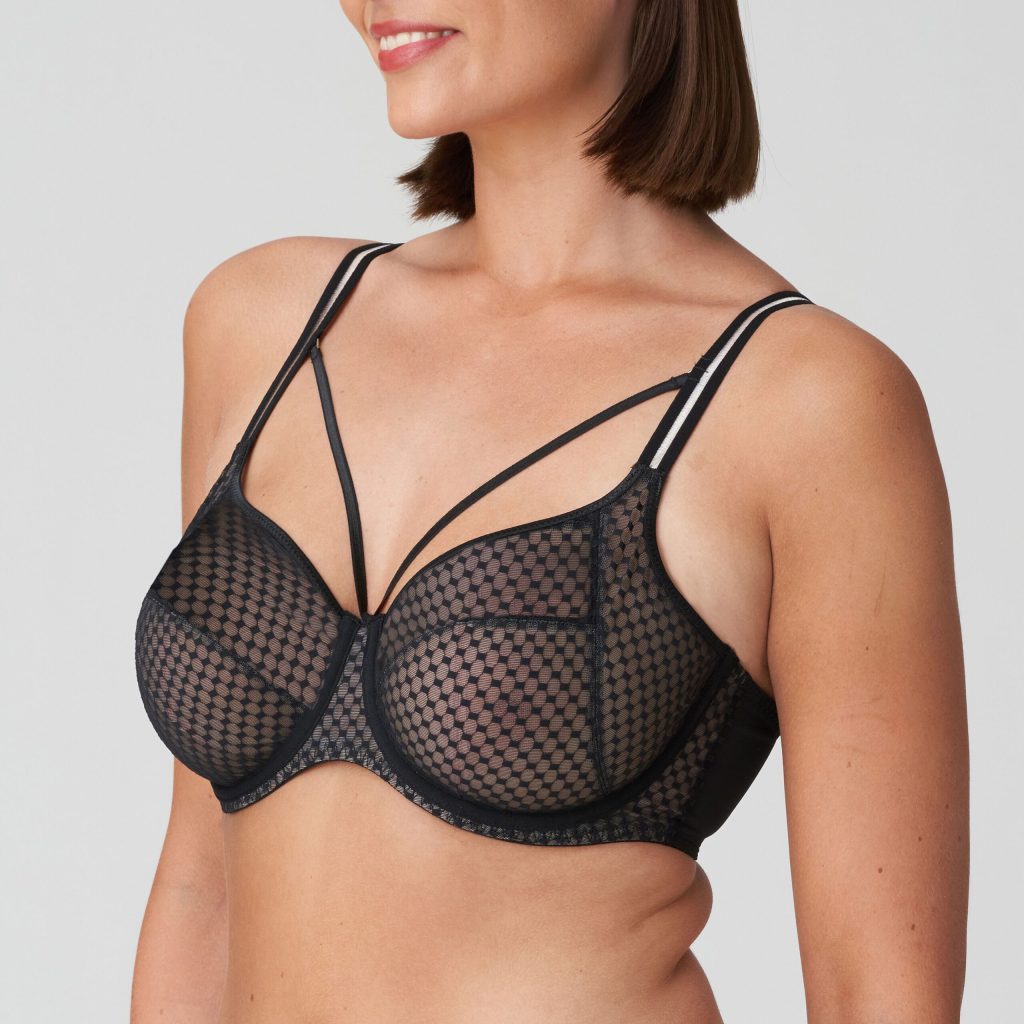 De Glass Beach beugel BH van Prima Donna Twist is uitgevoerd in de kleur zwart. Een elegante beugel bh, overtrokken met tule, versierd met een uniek rondjespatroon. Dit is een luchtige volle cup met transparant bolletjestule. De driedelige cups omvatten de borsten volledig. De cups liften en centreren de borsten en geven ze een volmaakt ronde vorm. Door middel van het bijgevoegde afneembare sierbandje leg je het accent op het decolleté. Wil je de bh een keer zonder bandje dragen, kan dit ook. De semi transparante schouderbandjes van deze bh mogen ook zeker gezien worden! Combineer deze BH met één van de bijzondere bijpassende slips en je hebt een prachtige set! Glass Beach is de perfecte balans tussen uitdagend, vrouwelijk en minimalistisch.Verzenden