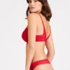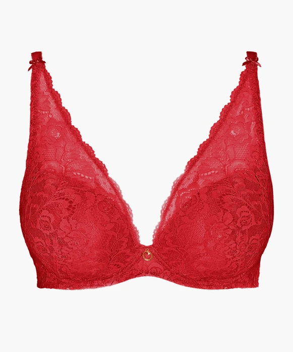 De Aubade ROSESSENCE bh is van rood kant. De cups zijn afgewerkt met een sierlijke kant langs het decolleté en wat door loopt tot in het schouderbandje, het lijkt een bralette bh maar dan met beugel. Het jacquardkant is erg zacht en daardoor erg comfortabel. De bh heeft een haaksluiting op de rug en vaste, verstelbare schouderbandjes. De schouderbandjes zijn afgewerkt met kant en een strikje. Tussen de cups zit een gouden hangertje met een Swarovski steentje. Valt iets ruimer in omvang. Wij adviseren 1 maat kleiner in omvang te nemen, wel dezelfde cupmaat aan houden. Ook geschikt voor grotere cupmaat.Aanvullende informatie