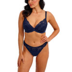 Nieuw in onze collectie: De Most Divine Plunge BH in de diepe kleur Dark Sapphire. Deze onweerstaanbare collectie straalt luxe uit dankzij de fijne micro-pailletten die subtiel verweven zijn in het delicate donkerblauwe kant. Deze prachtige plunge bh met een V-vormig middenstuk heeft heerlijke zachte push-up pads die het decolleté extra volume geven. Door het elastische kant sluiten de cups aan de bovenzijde erg mooi op de borst. De zachte microvezel zijpanden zorgen voor optimaal draagcomfort en ondersteuning. Volledig verstelbare bandjes met satijnglans en zachte haaksluiting aan de achterkant. Luxe afwerking met een sprankelend diamanté-bedeltje in het midden. Combineer met één van de bijpassende slips en je hebt een geweldige najaarsset!