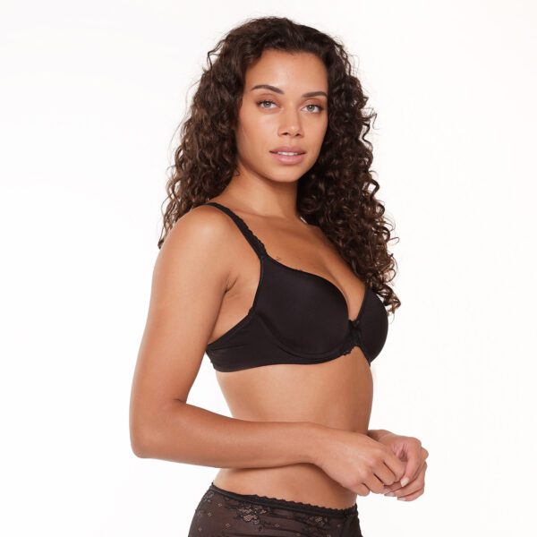 De LingaDore DAILY voorgevormde bh is zwart. De bh heeft effen cups welke zich aanpassen aan de vorm van de borst. De bh heeft ondersteunende zij- en achter panelen voor een ideale pasvorm. Tussen de cups is de bh afgewerkt met kant en een speels strikje. De achterkant van de bh is effen met een haaksluiting op de rug. De bh heeft vaste, verstelbare schouderbandjes welke zijn afgewerkt met kant. Vanwege de gladde cups en is daardoor ideaal te dragen onder strakke kleding. De perfecte t-shirt bh met een mooie satijn glans. Is je maat er niet? Vraag gerust even naar de bestelmogelijkheden.Verzenden