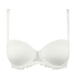 De Marie Jo JANE voorgevormde balconnete bh is ivoor. Naast en onder de cups is de bh voorzien van transparant gebloemde broderie. De achterkant van de bh is transparant effen, met een haaksluiting op de rug. De randen zijn speels afgewerkt. De bh heeft vaste, verstelbare schouderbandjes. De bandjes zijn dubbel aan de voorkant. Tussen de cups zit een strikje. Combineer met de prachtige bijpassende broekjes die exact het zelfde broderie hebben. Dit artikel behoort tot onze standaard collectie. Mocht het artikel niet op voorraad zijn, dan wordt deze nabesteld en binnen 2 tot 3 werkdagen geleverd.-