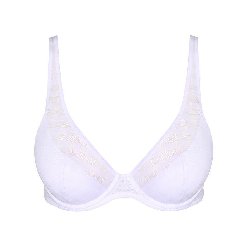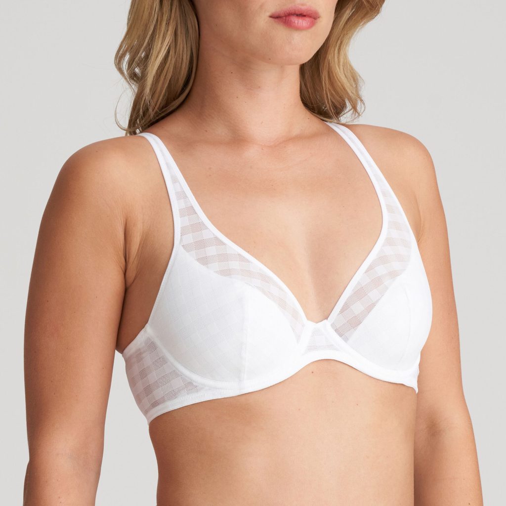 De nieuwe Marie Jo Jereme voorgevormde plunge bh is in de kleur wit. Dit nieuwe model van Marie jo is al wel bekend van Prima donna. Zowel de cups als de omvang zijn voorzien van het ruitje. Dit motief loopt door in de schouderbandjes. De plunge BH heeft een beugel én diep decolleté wat zorgt voor de perfecte pasvorm. LET OP! De bh valt een maat kleiner dan de andere bh’s van Marie jo. De gladde bh tekent niet in de kleding, dus perfect te dragen als T-shirt BH. De bh heeft een haaksluiting op de rug, en verstelbare bandjes.Super leuk ook te combineren met de bijpassende top of leuke blouse.Verzenden