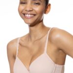 De Mey Amorous voorgevormde bh heeft een huidskleur. De cups zijn effen en zijn rondom afgewerkt met kant, met een speels randje aan de onderkant. De achterkant van de bh is effen. De bh heeft een haaksluiting op de rug en vaste, verstelbare schouderbandjes. Langs de schouderbandjes loopt een strookje speels kant wat doorloopt tot over de cups. Tussen de cups zit een strikje. De bh heeft een perfecte pasvorm vanwege de elastische cups.-