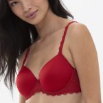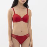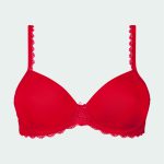 Details: De Mey Amorous voorgevormde bh is er nu ook in rood! De cups zijn effen en zijn rondom afgewerkt met kant, met een speels randje aan de onderkant. De achterkant van de bh is effen. De bh heeft een haaksluiting op de rug en vaste, verstelbare schouderbandjes. Langs de schouderbandjes loopt een strookje speels kant wat doorloopt tot over de cups. Tussen de cups zit een strikje. De bh heeft een perfecte pasvorm vanwege de elastische cups.