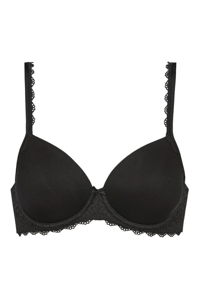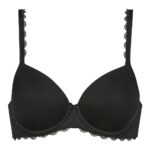 De Mey Amorous voorgevormde bh is zwart. De cups zijn effen en zijn rondom afgewerkt met kant, met een speels randje aan de onderkant. De achterkant van de bh is effen. De bh heeft een haaksluiting op de rug en vaste, verstelbare schouderbandjes. Langs de schouderbandjes loopt een strookje speels kant wat doorloopt tot over de cups. Tussen de cups zit een strikje. De bh heeft een perfecte pasvorm vanwege de elastische cups. Dit artikel behoort tot onze standaard collectie. Mocht het artikel niet op voorraad zijn, dan wordt deze nabesteld en binnen 2 tot 3 werkdagen geleverd.-