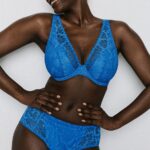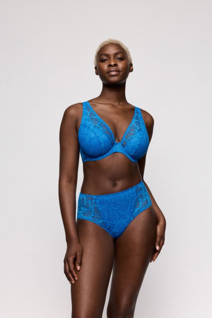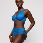Deze Twist PD MOCUTO plunge bh halve mousse BH voorgevormd is uitgevoerd in een opvallende kleur blauw. De bh voorgevormd heeft cups die volledig zijn overtrokken met fijn kant in een bloemmotief. Langs de bovenkant van de cups en de schouderbandjes loopt een sierlijke schulprand voor een elegante afwerking. Door het lage middenstuk ontstaat een diep decolleté, wat dit model geschikt maakt voor kleding met een lage halslijn. Met Twist PD kies je voor lingerie die stevige ondersteuning combineert met een verfijnde uitstraling.