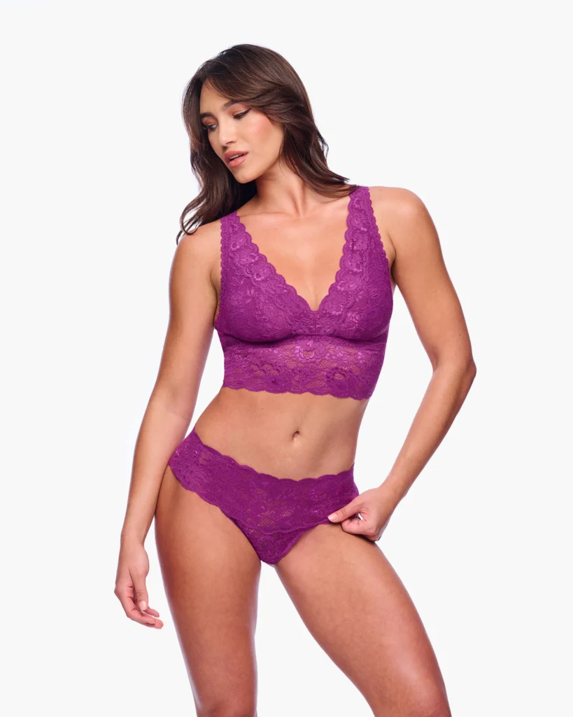 Deze plungie longline bralette van Cosa bella is er nu in het paars! Een prachtige sprekende kleur voor veel types! Deze bh zonder beugel is een super comfortabel en zonder rugsluiting. De diepe V geeft een prachtig decolleté. Het Italiaanse kant is heel elastisch en flexibel en heeft een mooie glans. De cups zijn gevoerd met mesh stof, voor een klein beetje support en geven je mooie natuurlijke rondingen. Geschikt a-d cup en in verschillende kleuren verkrijgbaar. Wil je een bh zonder beugel, maar wel met veel support? Ga dan voor de nieuwe PARADISO serie van Cosa Bella.Verzenden