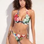 Details: De Donia push-up bikinitop van Pain de Sucre is er nu ook in een prachtige kleurenmix met mooie bloem print. De voorgevormde cups geven de borsten een mooie ronde vorm. Door de brede band onder de cups geeft deze triangel top extra ondersteuning en een mooi decolleté door de push-up. Top heeft een mooie wat bredere striksluiting in de hals en de rug, zodat je hem helemaal zelf op maat kunt strikken. Wil je iets meer borst bedekken, kies dan een grotere cupmaat. Wil je een wat smaller topje kies dan de kleinere cupmaat. Draag jij de top liever zonder de voorgevormde pads? Dan kan je deze er ook uit halen. Gemaakt van een super sterke, maar zachte snel drogende stof. Zit super comfortabel.