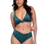 Je draagt deze GROEN gekleurde bikini push up van TenCateSwim comfortabel. De stof heeft een glitterstructuur. Tussen de cups zit een gesp. Een logobedeltje siert de zijkant.Product highlights