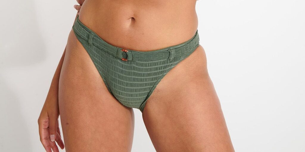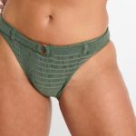 Details: De Dita bikini slip van Banana moon is uitgevoerd in de mooi kleur groen. Prachtige kleur en super leuk het reliëf wat in de slip verwerkt is. Deze bikinislip valt midden op de heupen en bedekt de billen gedeeltelijk. Bij de heupen lopen de banden iets smaller en slipje heeft een leuk riempje met houten sierring. De hoge uitsnijding van de benen creëert een slank silhouet. Broekje is volledig gevoerd.
