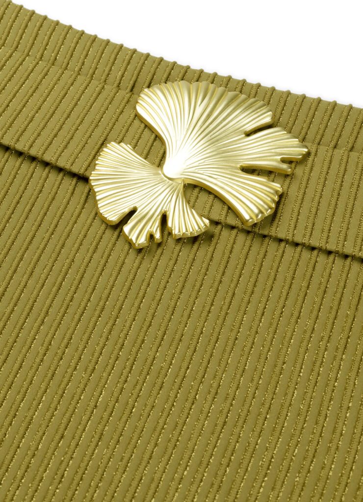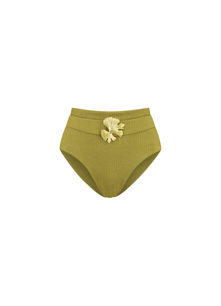 Details: Dit prachtige broekje uit de Chic Verder Cyell Design collectie is olijfgroen. Gemaakt in een ribstructuur met zachte gouden lurex draad met prachtige gouden sierdetail bloem. Deze high waist slip is gemaakt van een stevige, maar zachte stof en voelt heel soepel, maar tegelijk ook sterk aan.