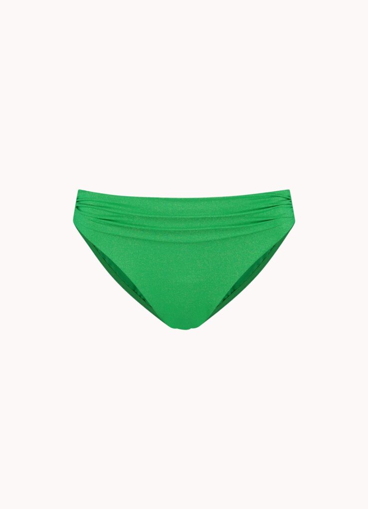 De Cyell Sparkling mid bikini slip (441) in de kleur groen biedt een stijlvolle basis voor jouw stranddag. Deze bikini slip is uitgevoerd in een stof met een verwerkte glitterdraad die zorgt voor een subtiele glinstering. De bovenzijde is afgewerkt met een geplooide band die bijdraagt aan een vrouwelijke uitstraling. Het model valt normaal op de heupen en biedt een comfortabele bedekking aan de achterzijde. Een goede keuze als je zoekt naar badmode met glitter die prettig aanvoelt en goed aansluit op het lichaam.