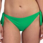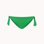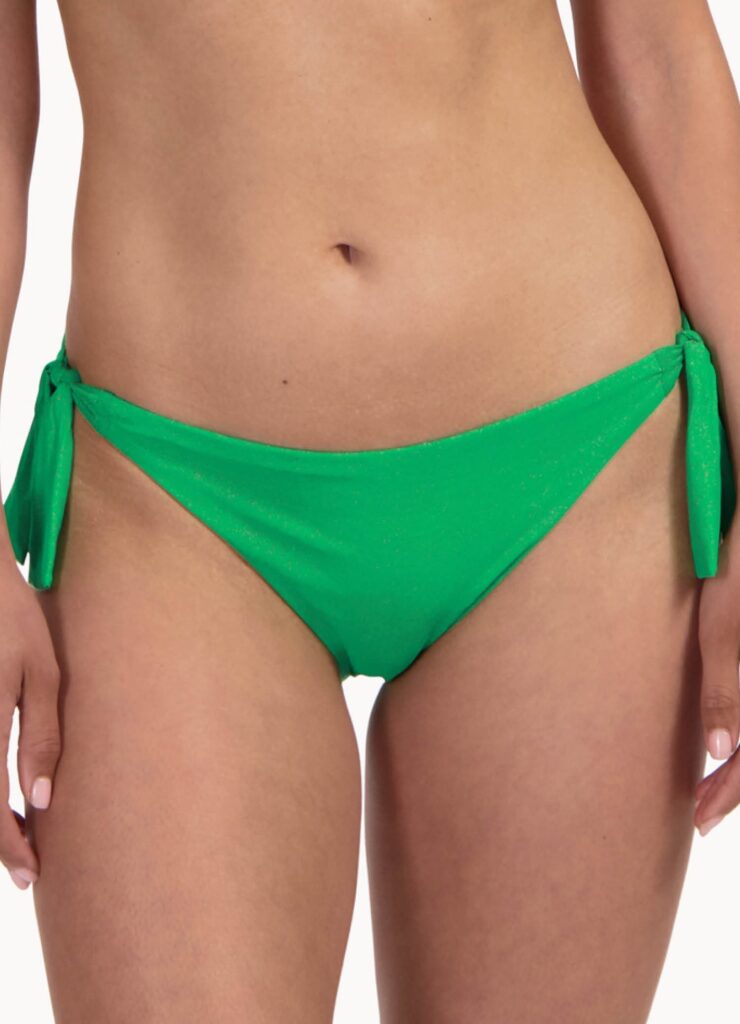 Deze Cyell SPARKLING strik bikini slip (441) kenmerkt zich door de opvallende groene kleur en de stof met een verwerkte glitterdraad. Het model is uitgevoerd als een klassieke bikini slip die je aan de zijkanten vastknoopt. Met deze striksluitingen pas je de taillewijdte eenvoudig aan naar jouw eigen wensen. Aan de achterzijde bevindt zich een klein goudkleurig metalen logo. De stof voelt glad aan op de huid en het broekje is volledig gevoerd. Dit item is een passende keuze voor wie zoekt naar badmode met glitter en een flexibele pasvorm.