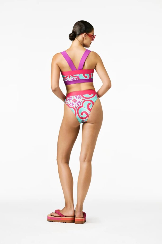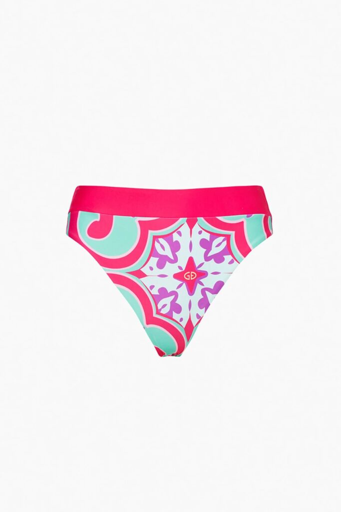 Bikini slip van Goldbergh met een brede tailleband in Pink en een kleurrijke geometrische print. De gladde stof sluit prettig aan. Het high waist ontwerp is hoog uitgesneden en benadrukt je taille. Op het midden voor staat een klein GD logo.