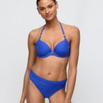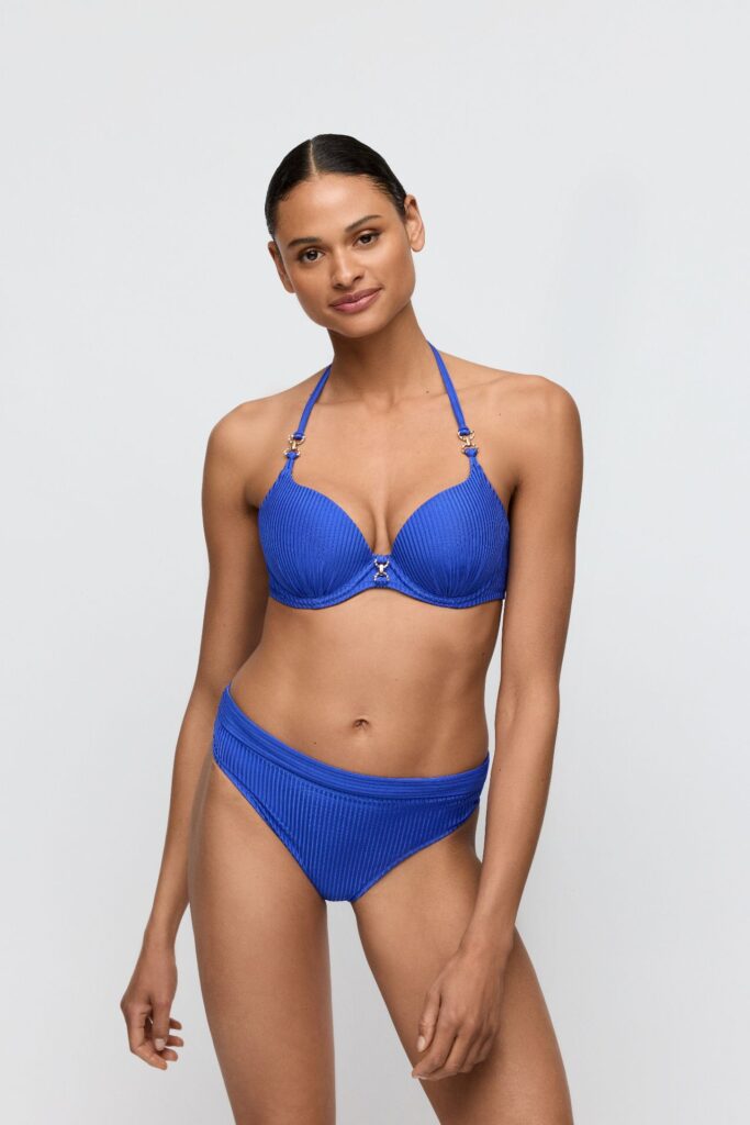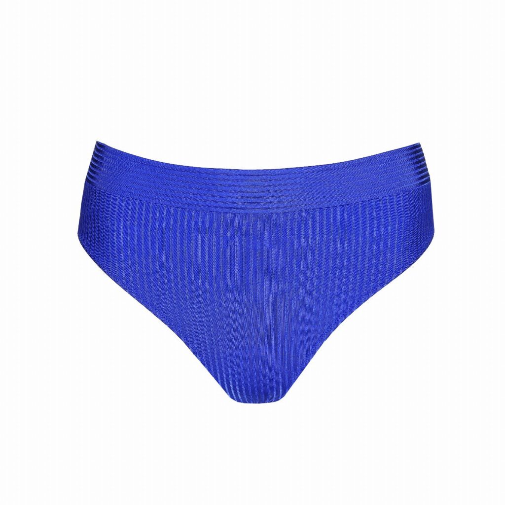 De MarieJo Swim EMLY bikini slip met omslag (441) is uitgevoerd in de kleur blauw. Dit model is gemaakt van een stof met een verfijnde ribstructuur voor een moderne look. De slip heeft een omslagband aan de bovenkant, waarmee je de taillehoogte naar wens aanpast. Deze bikini slip biedt een comfortabele pasvorm en sluit mooi aan op de huid. Het is een veelzijdig item van MarieJo Swim voor zonnige dagen.Highlights