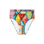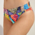 De Pain de Sucre TOBAGO 68 omslag bikini slip kenmerkt zich door een levendig Rood dessin met geometrische vormen. Dit model heeft een hoge taille die de buik bedekt en biedt een comfortabele pasvorm. De stof toont een kleurrijk mozaïekpatroon dat diverse tinten combineert. Je draagt deze bikini slip voor een zomerse look op het strand. Het materiaal sluit mooi aan op het lichaam.