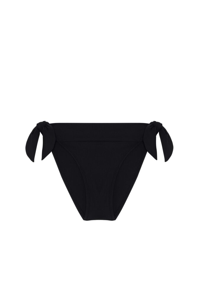 Details: De Diva strik bikini slip van Pain de sucre is uitgevoerd in het zwart. De bikinislip valt laag op de heupen en bedekt de billen gedeeltelijk. De leuke strikken aan de zijkanten kan je zelf naar wens strakker of losser strikken. Zo zit het broekje altijd perfect! De bikinibroekjes DIVA passen bij alle lichaamstypes. De hoge uitsnijding van de benen creëert een slank silhouet. Broekje is volledig gevoerd. Als je het broekje iets hoger wilt dragen, kies dan voor een maat groter zodat je hem wat hoger kunt strikken.