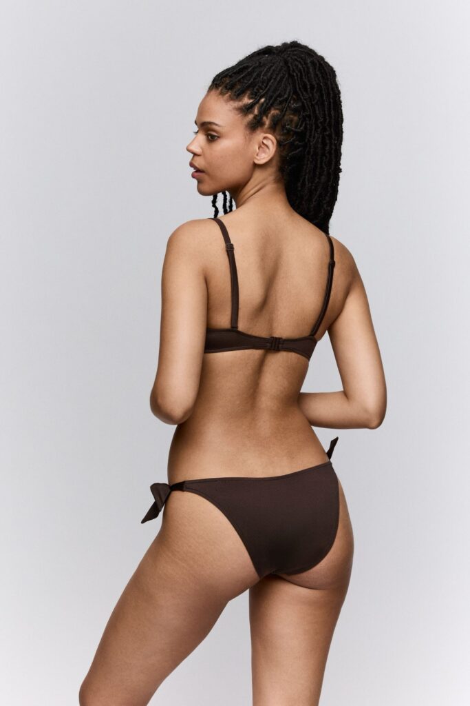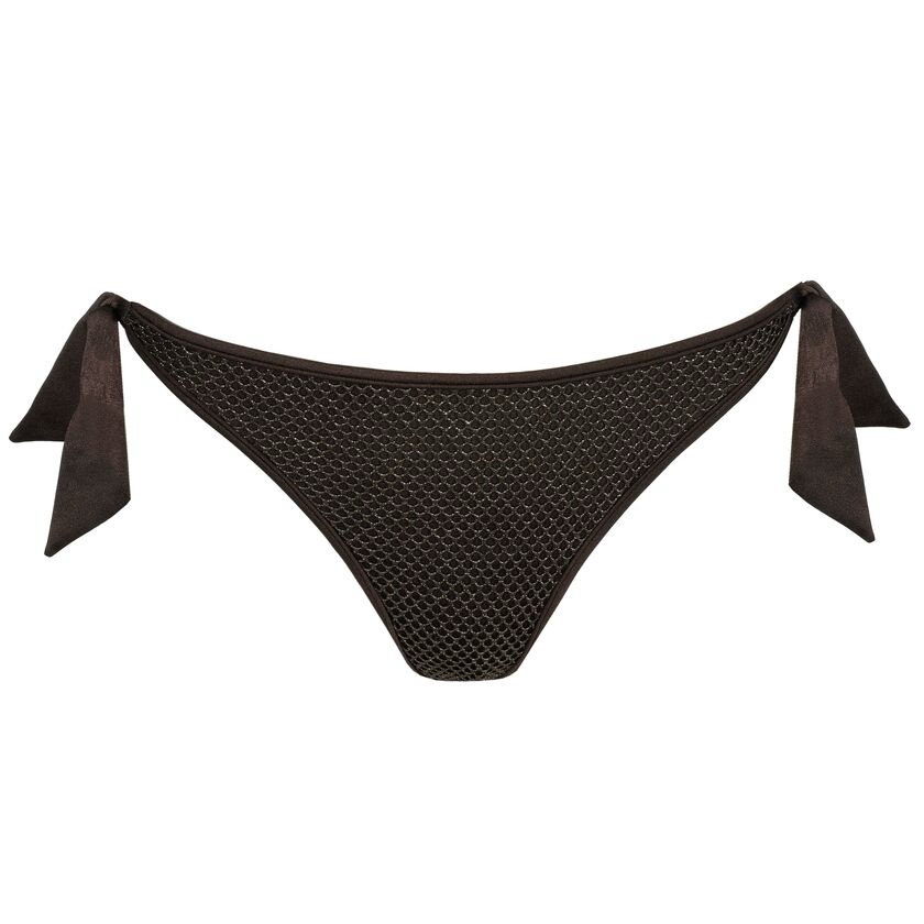 De SardaSwim JANJA bikini heupslip met ko bikini slip (441) is uitgevoerd in een warme kleur bruin. De voorzijde is voorzien van een stof met een opvallende structuur, terwijl de achterkant glad is afgewerkt. Aan de zijkanten heeft deze bikini slip brede striklinten waarmee je de maat naar wens aanpast. Dit model van SardaSwim biedt een comfortabele en elegante basis voor warme zomerdagen aan het water.