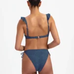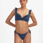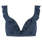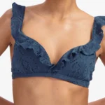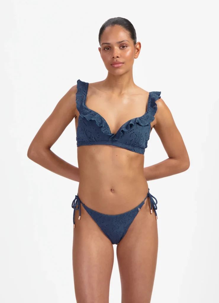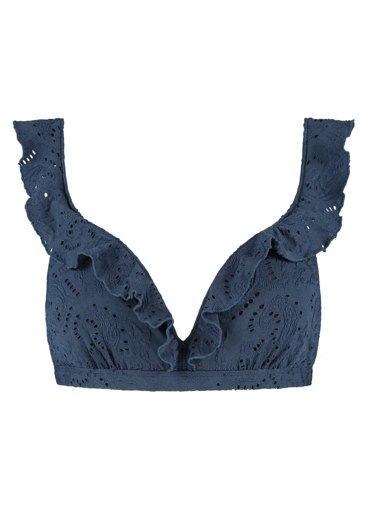 Details: De Nightsky twisted bikinitop met ruffles van Beachlife is uitgevoerd in de mooie jeansblauwe kleur. Extra bijzonder zijn de broderie in de stof en de ruffles over de cups en schouderbandjes. Vrouwelijk en sporty met een super comfortabele fit! Deze bestseller top heeft voorgevormde cups die de borsten een mooie ronde vorm geven en een natuurlijke lift. Doordat de cups hoger aansluiten is deze top geschikt voor vrijwel elk type borst. Daarnaast krijg je een prachtig decolleté. Combineer met één van de bijpassende broekje uit deze Nightsky collectie en je hebt een super leuke set!