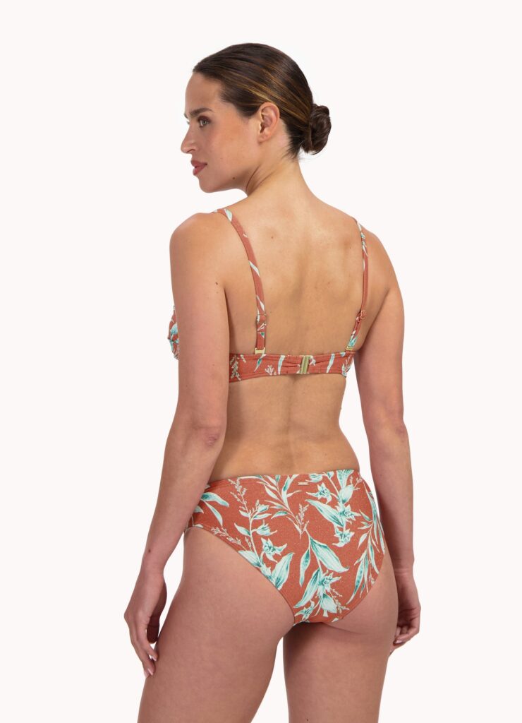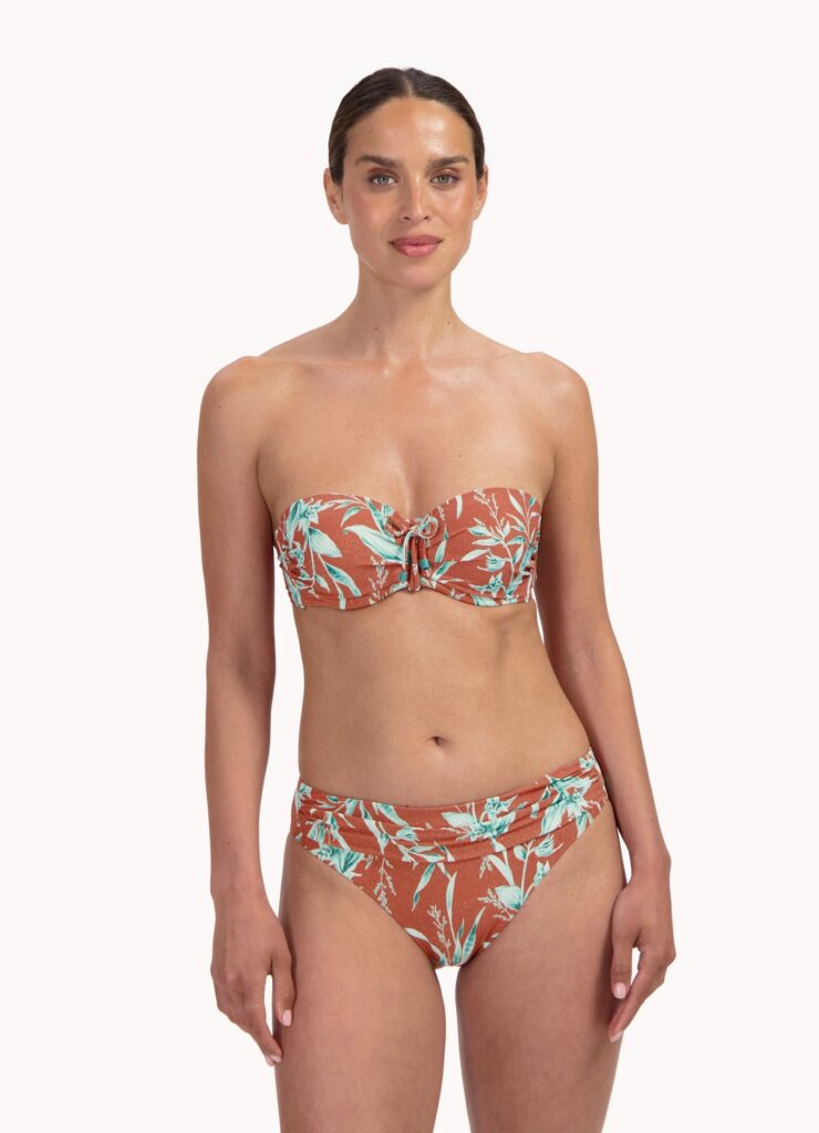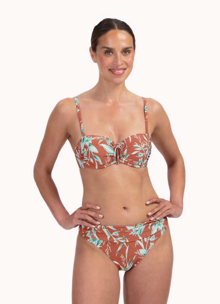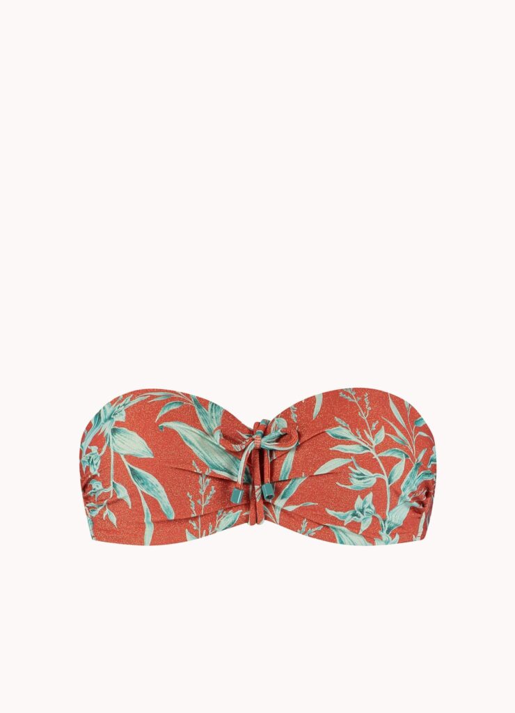 De Cyell RUSTY ROSE balconette bikini top combineert een zomerse uitstraling met functioneel comfort. Deze bikini top is uitgevoerd in een warme kleur rood met een contrasterend botanisch dessin en een subtiele glitterdraad. Tussen de cups bevindt zich een speels strikje met gekleurde kralen. Dankzij de constructie met beugel en voorgevormde cups ervaar je goede ondersteuning. De schouderbandjes zijn verstelbaar en afneembaar, waardoor je dit model ook strapless of als halter draagt. Als je zoekt naar badmode met glitter die kwaliteit uitstraalt, is dit een stijlvolle optie van Cyell.