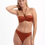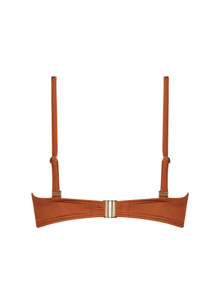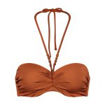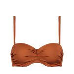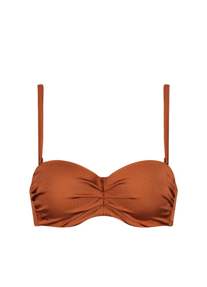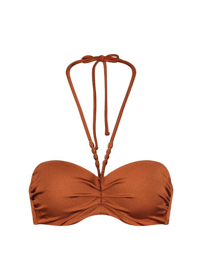 Details: De Treasure Cedar bandeau bikinitop van Cyell is uitgevoerd in de kleur bruin en heeft een prachtige glans! De bruine kleur met een structuur streepjes motief geeft een super vrouwelijke touch! De voorgevormde cups en beugel zorgen voor goede ondersteuning en geven de borst een mooie ronde vorm. De top heeft afneembare bandjes en kan dus ook strapless gedragen worden. Daarnaast zit er ook een super mooi halter bandje met gouden sierringetjes bij. Combineer met één van de bijpassende broekjes en je hebt een geweldige set!