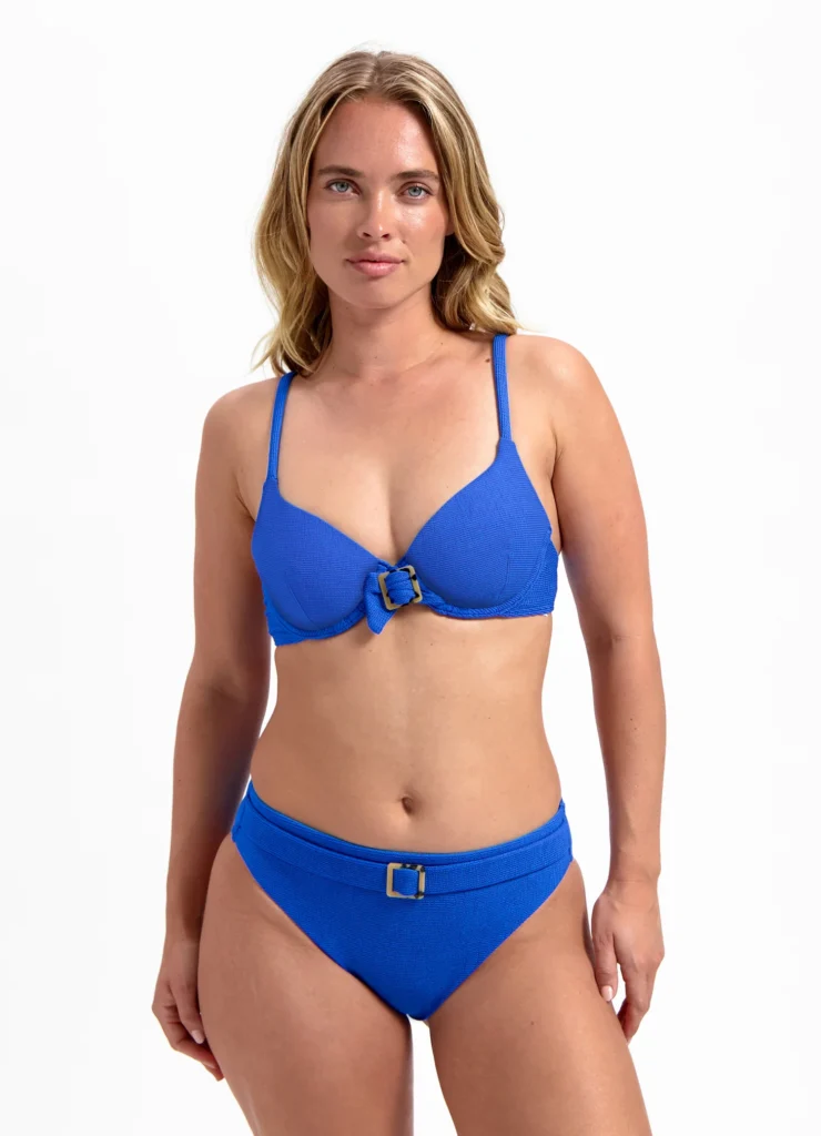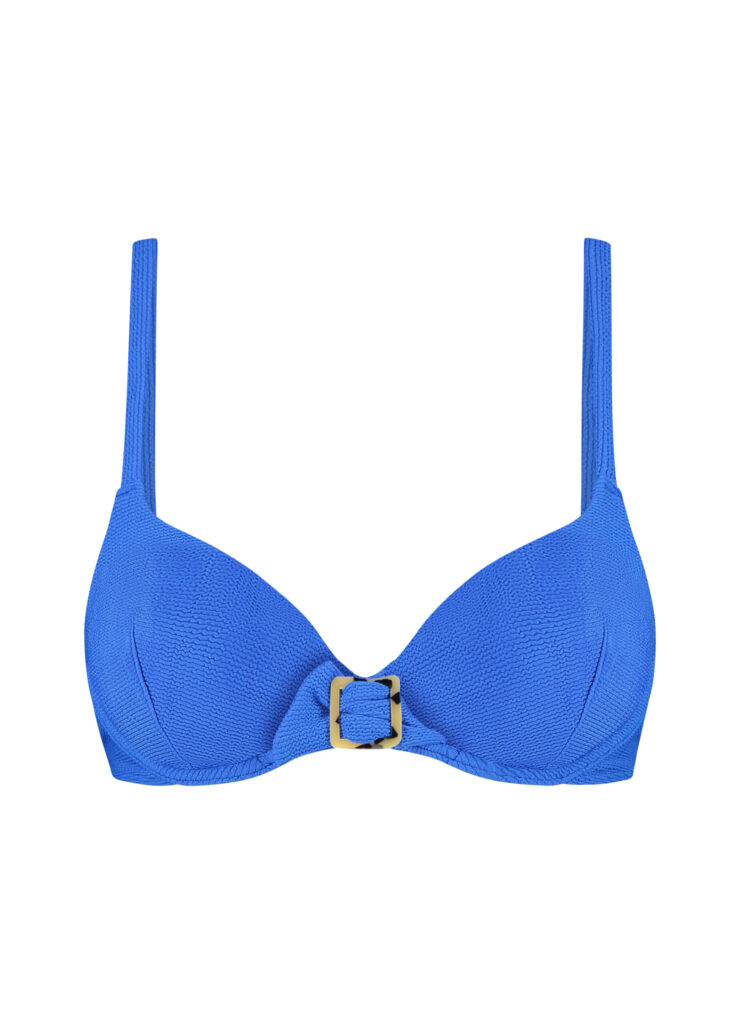 Details: : De Wavy blue feminine voorgevormde bikinitop van Cyell heeft een prachtige sprekende kleur blauw. In de kobalt kleurige stof zit ook een beetje reliëf. De voorgevormde cups van deze bikinitop geven de borsten een mooie ronde vorm. Extra leuk detail is de gewerkte gesp tussen de cups. Combineer met één van de bijpassende broekjes uit deze Wavy blue serie en jij straalt deze zomer! Vergeet ook de leuke speciale tuniek niet!