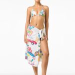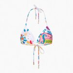 Deze witte bikini top heeft een triangle model en is voorzien van een veelkleurig dessin. De nekkoordjes en rugkoordjes zijn afgewerkt met goudkleurige metalen uiteinden. De gladde stof sluit aan op het lichaam. Je combineert deze zwemtop gemakkelijk voor een verzorgde look aan het water.
