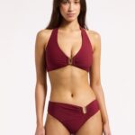 De Jets JETSET U-trim halter bikini top in de kleur rood biedt een elegante uitstraling voor zonnige dagen. Deze bikini top kenmerkt zich door de diepe V-hals en het goudkleurige U-vormige detail tussen de cups. De stof is geplooid verwerkt voor een verfijnde textuur. Je strikt de bandjes in de nek en op de rug, waardoor je de pasvorm eenvoudig naar wens aanpast. Dit model combineert een stijlvol ontwerp met een comfortabele pasvorm.