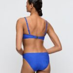 De MarieJo Swim EMLY voorgevormde bikini ha blouse in de kleur blauw vormt een stijlvolle basis voor jouw strandoutfit. Deze bikini top is uitgevoerd in een stof met een fijne geribbelde structuur die het geheel een verfijnde uitstraling geeft. De cups zijn voorgevormd en voorzien van een beugel voor een solide ondersteuning. Opvallende details zijn de goudkleurige metalen elementen bij de aanzet van de schouderbandjes en tussen de cups. Je verstelt de bandjes eenvoudig op de rug voor een passende aansluiting.Highlights