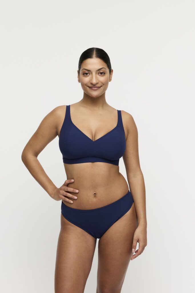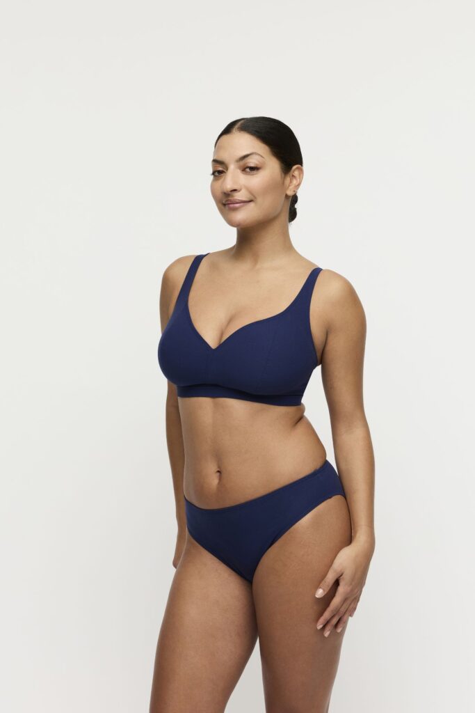 De PrimaDonna Swim ASWAN triangel bikini top in de kleur Marine is een stijlvolle keuze voor zonnige dagen. Deze bikini top kenmerkt zich door een diepblauwe stof met een verfijnde glitterstructuur die zichtbaar is in het licht. Het model heeft stevige cups die zorgen voor een natuurlijke vorming van de borst. De brede band onder de cups biedt extra stevigheid. Je draagt dit item met rechte schouderbandjes die zorgen voor een stabiele ligging op de schouders. Deze top van PrimaDonna Swim combineert een tijdloze look met een comfortabel gevoel.