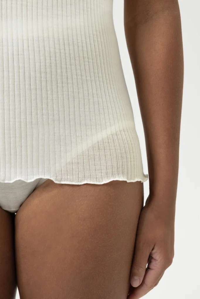 De Mey-top uit de Wool Expressive-collectie in de kleur Oatmilk is een echte essential. De Wool Expressive-lijn staat bekend om haar elegante ribstructuur en verfijnde kanten details. Dankzij het zijdezachte materiaal en het ontbreken van zijnaden voelt deze top comfortabel aan, zonder te kriebelen en sluit hij perfect aan op je lichaam. Dit zijn de ideale tops voor dagelijks gebruik. Dankzij de perfecte mix van materialen en de uitstekende afwerking heeft deze top veel te bieden en voldoet hij gegarandeerd aan de hoogste eisen. De bovenstukken voldoen aan het certificaat Oeko-Tex® Standard 100. Met dit product kies je bewust voor een textiel dat getest is op schadelijke stoffen. In meerdere kleuren verkrijgbaar.-