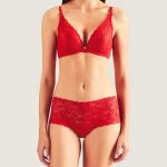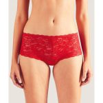 De Aubade ROSESSENCE hipster is van rood transparant kant. De boord en beenopeningen zijn speels afgewerkt. Aan de achterkant zit een gouden hangertje met een steentje. De hipster heeft een gevoerd kruis.Aanvullende informatie