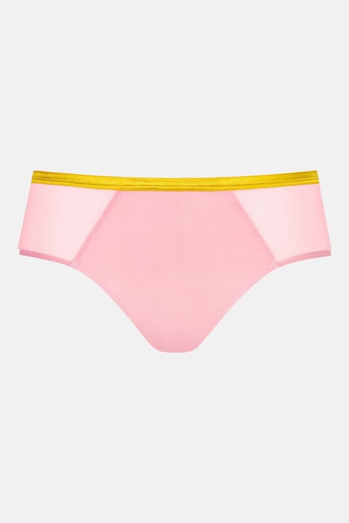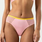 Deze Mey POETRY almost sheer hipster in de kleur Rose combineert een verfijnde uitstraling met een comfortabele pasvorm. De slip is uitgevoerd in een gladde en zachte stof die prettig aanvoelt op de huid. Aan de zijkanten zijn transparante mesh vlakken verwerkt die zorgen voor een luchtig effect. Een opvallend detail is de gele elastische band aan de bovenzijde die een fris contrast biedt. De hipster valt laag op de heupen en de vlakke naden zorgen voor een onzichtbare afwerking onder kleding. Met het artikelnummer 200108 is dit item eenvoudig terug te vinden in de collectie van Mey.