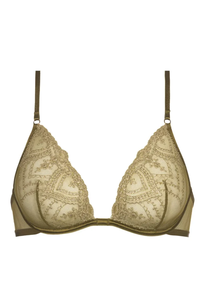 Dit is de allernieuwste Mey triangelbeha met beugels uit de serie Mysterious. De bh is gemaakt in de kleur Urban Green. Wauw, de perfecte kleur groen en bij heel veel types staat deze kleur mooi op de huid. Luxe materialen, verfijnde details en optimale ondersteuning door de beugel. De bh heeft een beugel en is niet voorgevormd. Dit geeft een mooie natuurlijke pasvorm. Gemaakt in alle over tule kant, met prachtige gouden kant versieringen, een echte eyecatcher! Combineer met de bijpassende string of rio slip en je hebt een geweldige set!Verzenden